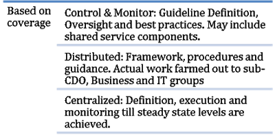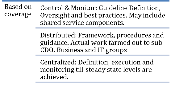 The definition, right choice of candidate, and maturity path are collectively influenced by the model / approach taken from a coverage standpoint – how comprehensive, targeted or expansive the positioning is. Also, there can be continuous role expansion based on the extent of opportunities and problems that a company strives to solve through the data, analytic and digital initiatives - which is why choosing a CDO who can grow / adapt with the role expansion is critical.